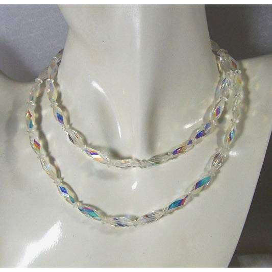 Vintage Swarovski AB Twisted Crystal Necklace 29” Bead Styles 5206 & Spacer 5305