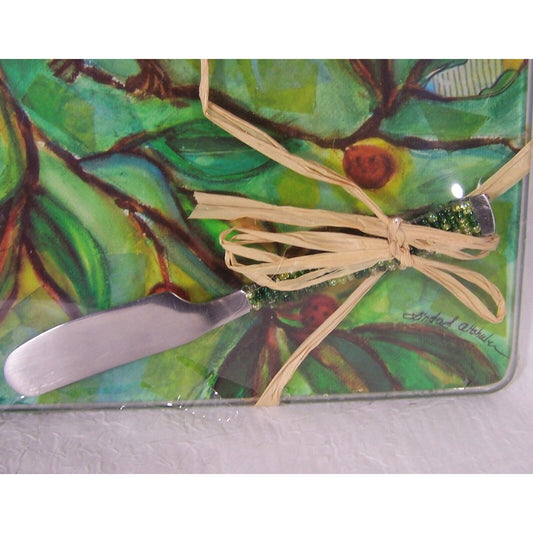 Song Bird LSArts Tempered Glass Cheese Plate and Spreader