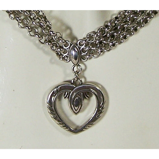 Brighton Silver Tone Heart Pendant Necklace Three Chains
