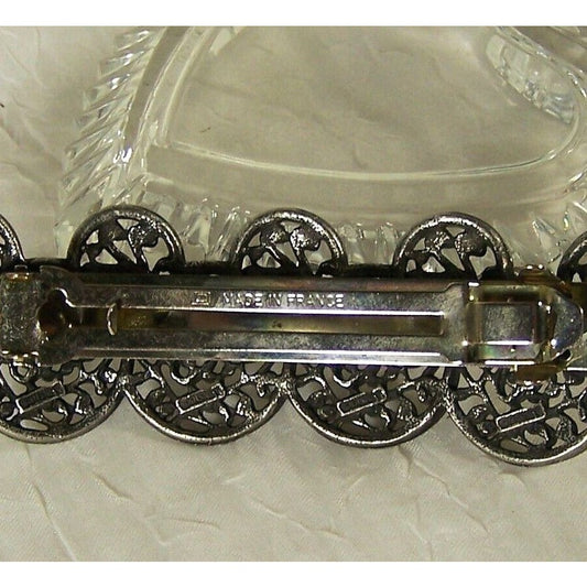Hair Clip Silver Tone Stamped Made in France Floral Design 4"