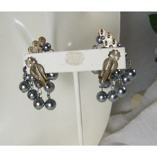 Vintage Clip-On Cha Cha Climber Earrings Black Dangle Fringe Plastic