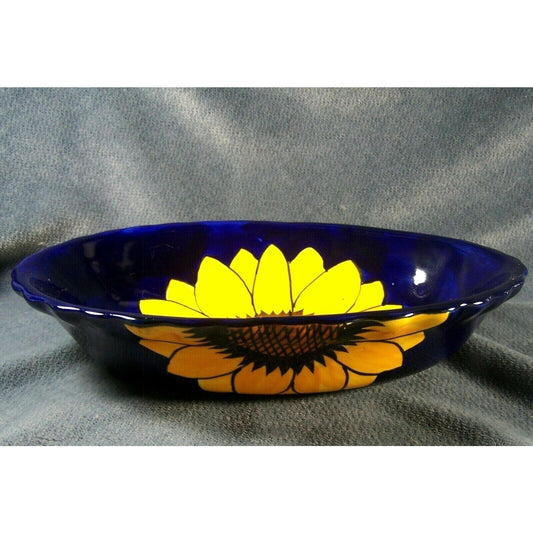 Talavera Pottery Cobalt Sunflower Serving Bowl Artist Mark Lead Free